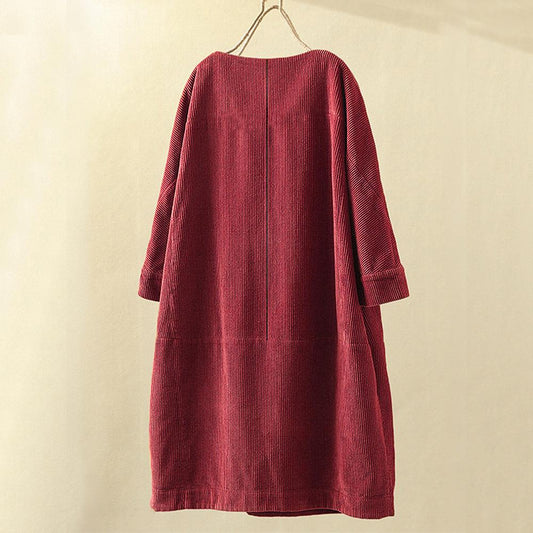 Women Dress - Corduroy - Loose Fit - Long Sleeves - Comfortable and Casual
