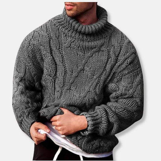 Men's Sweater – Turtleneck – Wool Blend – Relaxed Fit – Cable Knit Pullover