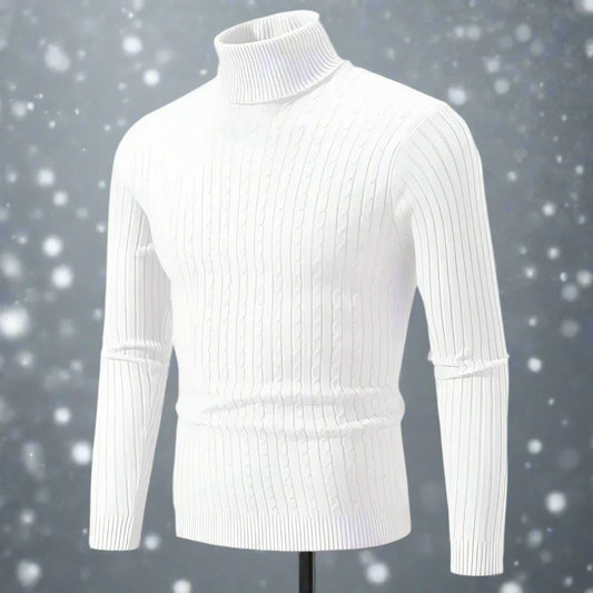 Men's Sweater – High Neck Cable Knit – Slim Fit – Soft and Warm – Long Sleeve