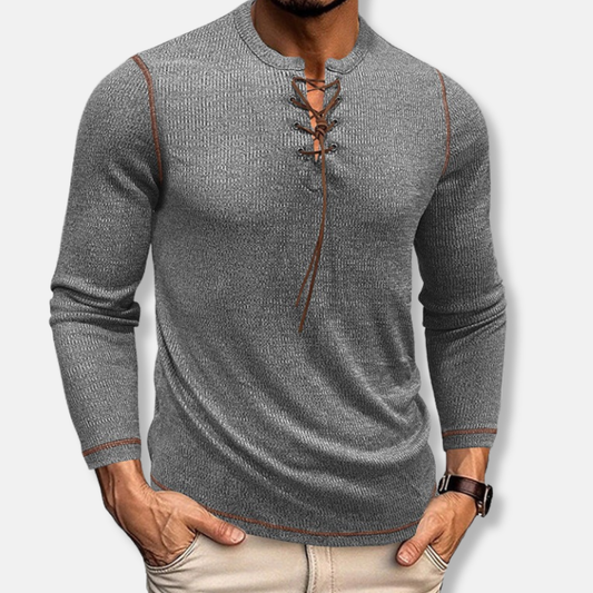 Valerio Slim Fit Henley Shirt | Lace-Up Neck Henley Shirt