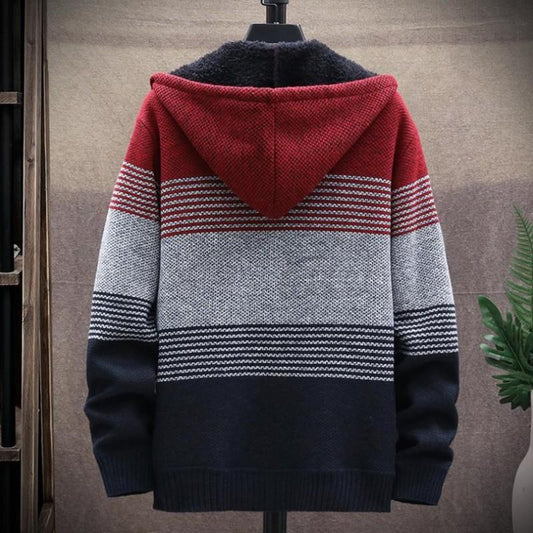 Men's Knitted Hoodie – Zipper – Comfortable – Ribbed Cuffs and Hem
