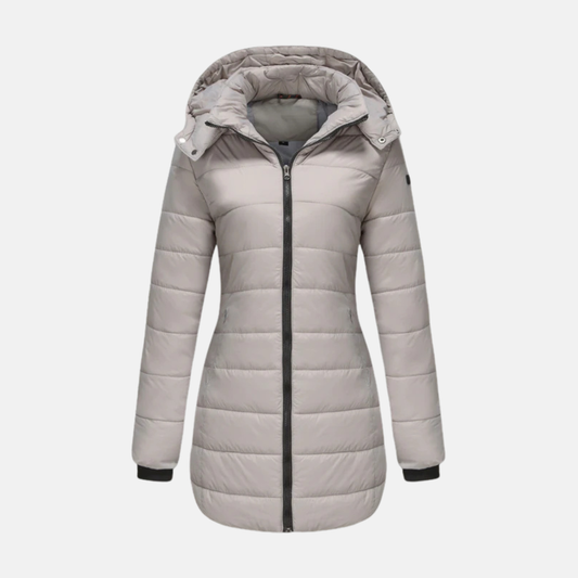 Women’s Puffer Coat - Mid-Thigh Length - Hooded - Two-Way Zipper