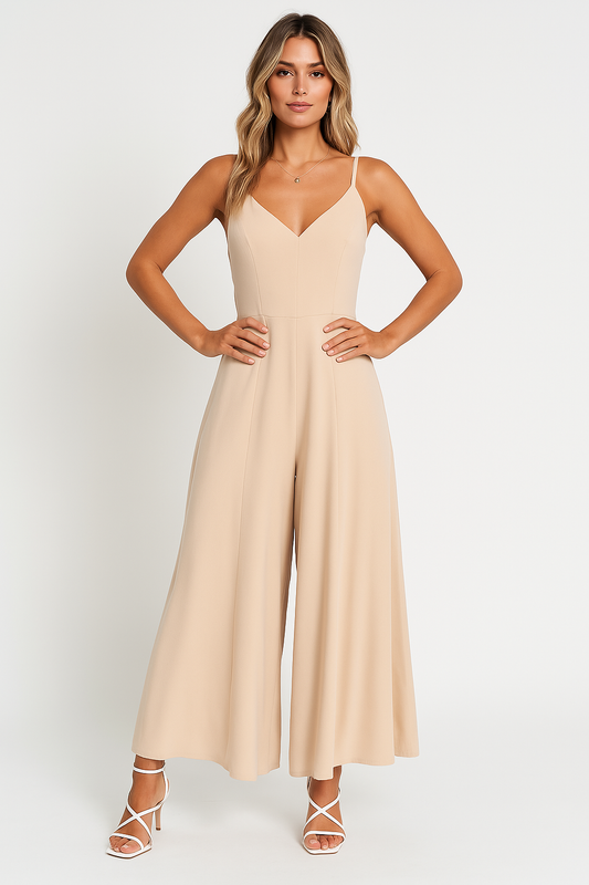 Women's Jumpsuit – V-neck – Spaghetti Straps – Wide Legs – Relaxed Fit – Defined Waist