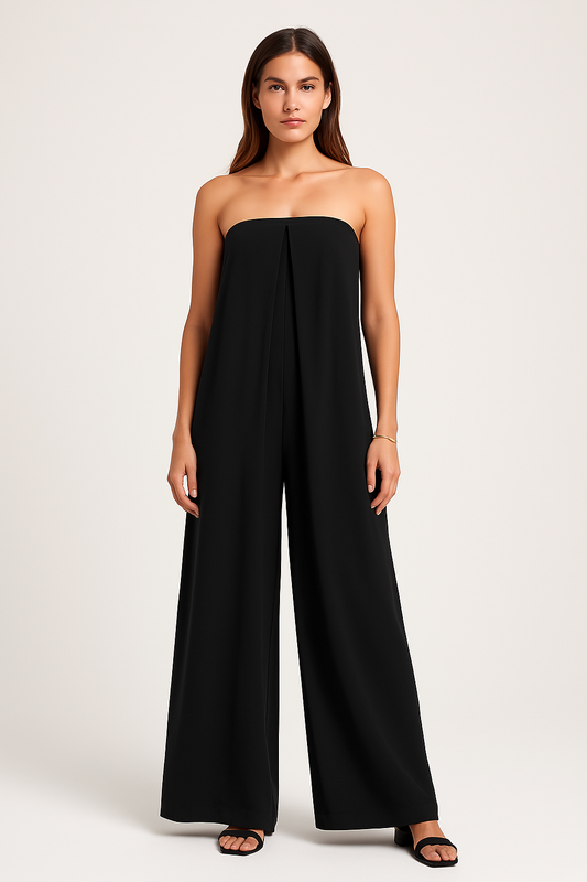 Women's Jumpsuit – Strapless Bandeau – Relaxed Fit – Wide Legs – Lightweight Fabric