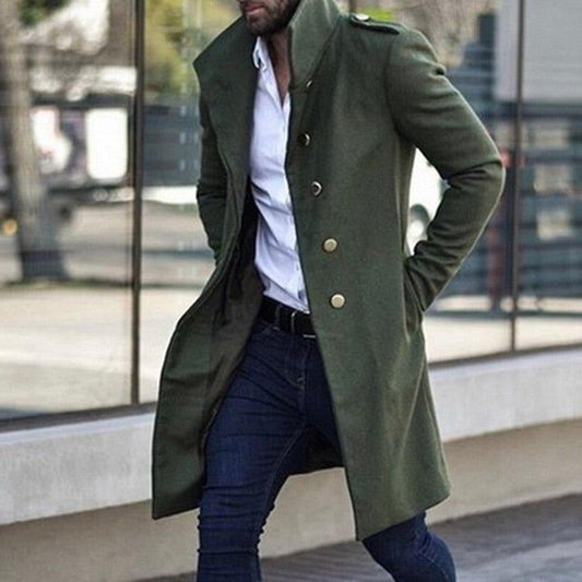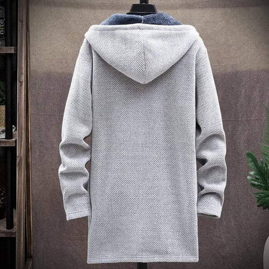 Men's Long Coat - Textured Fabric - Soft Lining - Drawstring Hood - Casual Fit