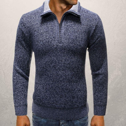 Men's Sweater - Knitted Half Zip - Ribbed Cuffs and Hem - Casual Fit