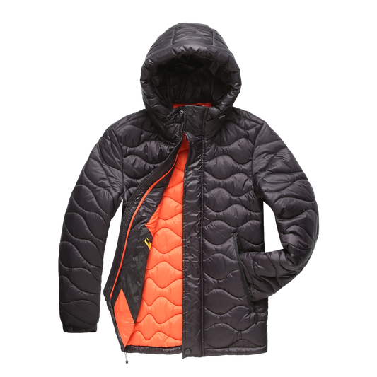 Men's Puffer Jacket - Padded and Windproof - Drawstring Hood - Zipper and Button Closure