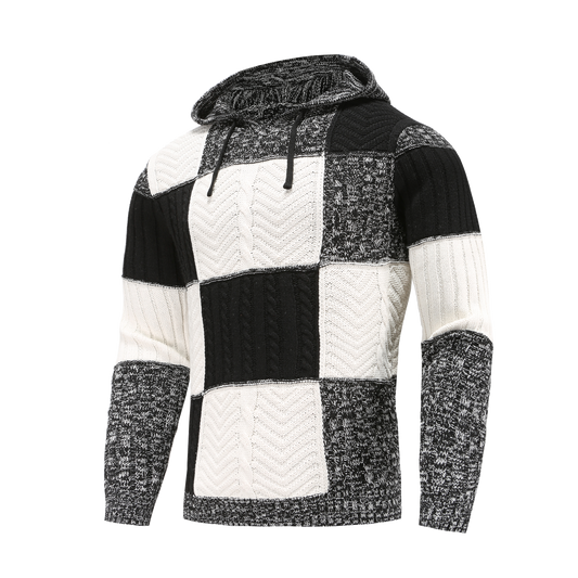 Men's Sweater with Hood – Knitted Design – Patchwork Pattern – Comfortable Fit