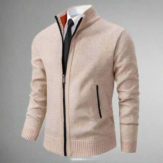 Men's Cardigan - Zipper - High Collar - Slim Fit - Ribbed Cuffs