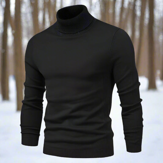 Men's High-Neck Sweater - Soft Knit - Slim Fit - Ribbed Cuffs