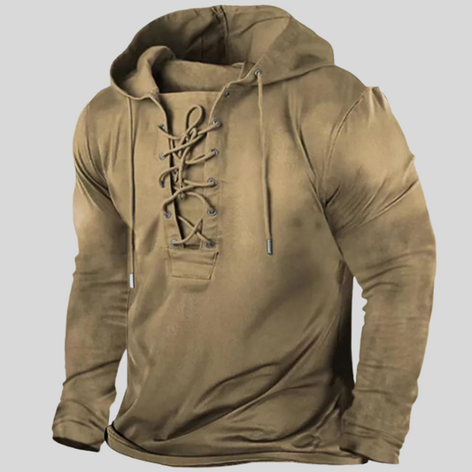 Men's Sweater - Long-Sleeved Lace-Up - Durable and Rustic - With Front Pockets