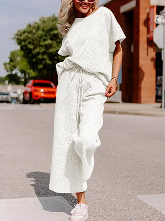 Women's Set – Relaxed Fit – Soft Knit – Short-Sleeved Top and Wide Pants