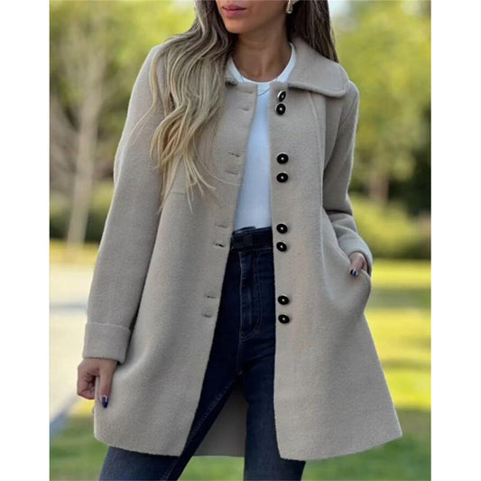 Women's Coat – Wool – Tailored Fit – Single-Breasted – Wide Collar – Mid-Length