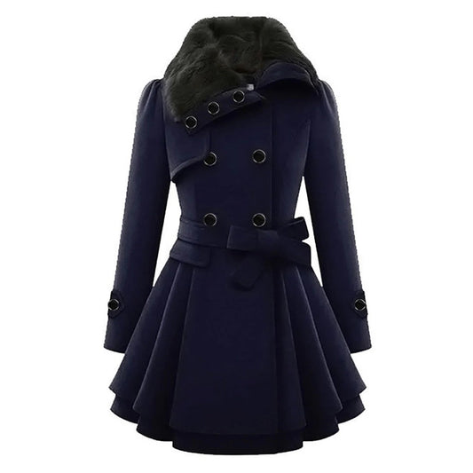 Women's Coat – Tailored Fit – A-line – Double-breasted – Faux Fur Collar – Belt