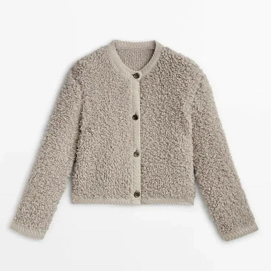 Women's Teddy Jacket – Relaxed Fit – Soft Wool Texture – Button Opening – Everyday Use