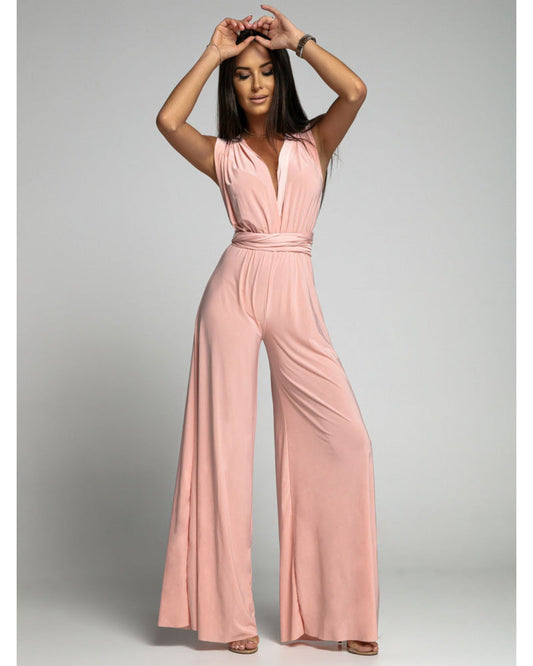 Women's Jumpsuit – Sleeveless – Wrap V-Neckline – Wide Legs – Comfortable Fit