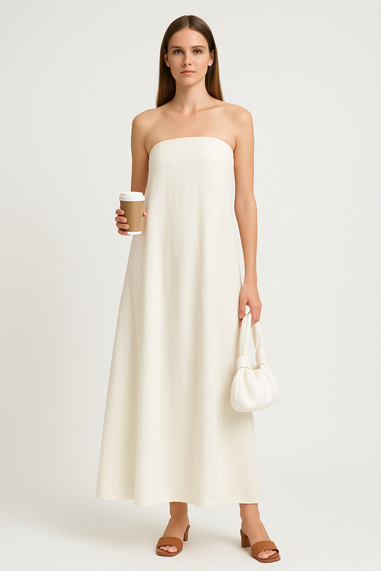 Women's Maxi Dress – Strapless – Cotton Linen Blend – Relaxed Fit – Backless