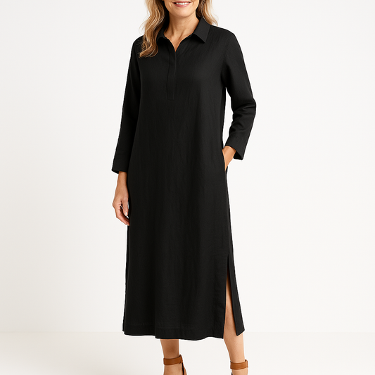 Women's Shirt Dress – Relaxed Fit – Lightweight Woven – Midi Length – Long Sleeves – Split