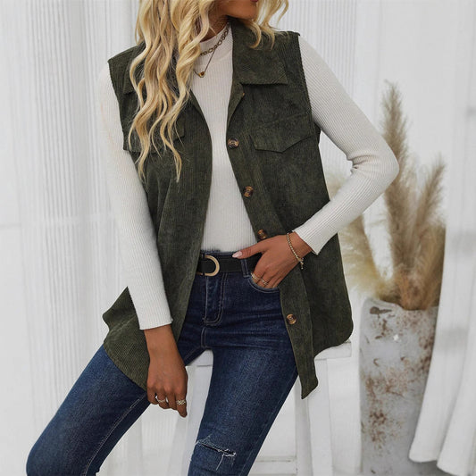 Women's Vest – Soft Corduroy – Relaxed Fit – Button Closure and Chest Pockets