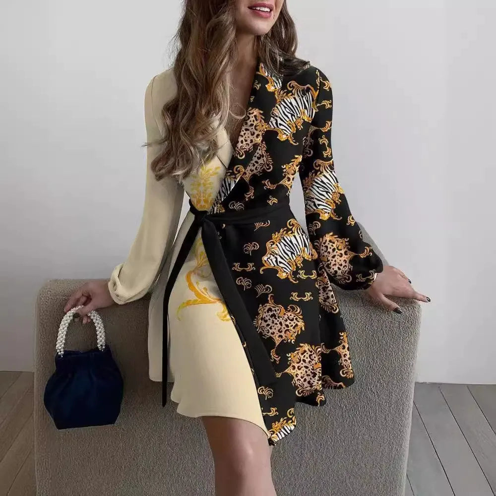 - Design: Relaxed fit, belted waist, eye-catching pattern, long sleeves