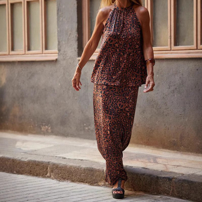 Women's Two-Piece Set - Halterneck Top and Long A-line Skirt - Light and Breathable. This two-piece set for women features an airy halterneck top and a flowing A-line skirt, perfect for warm weather. The lightweight fabric and relaxed fit provide ultimate comfort and effortless style for casual or semi-formal occasions.