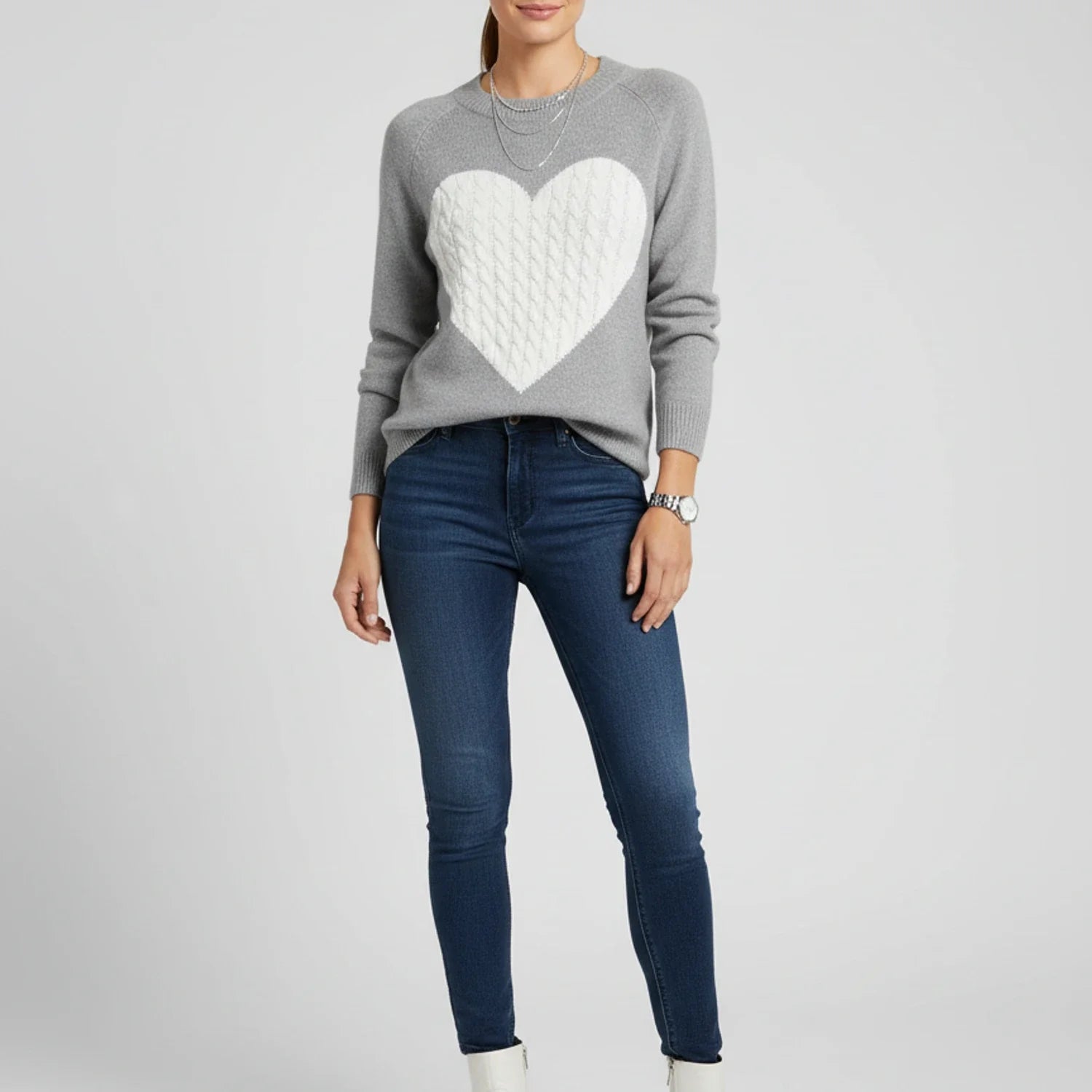 Emma Relaxed Fit Sweater | Heart Print Cable Knit Sweater