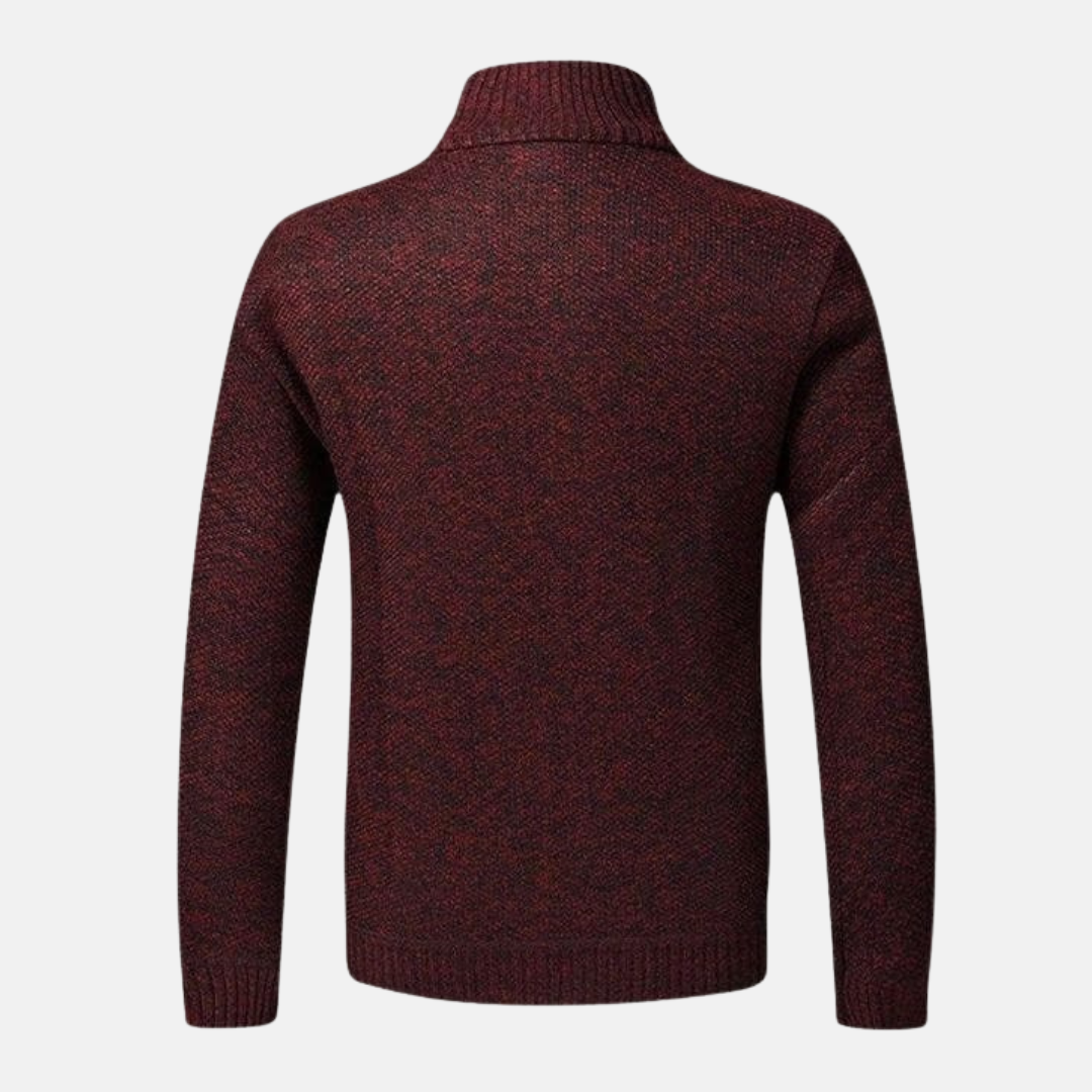 This high-collar cardigan offers a refined yet comfortable option for casual wear. Designed with a classic regular fit and a convenient zipper closure, it features a distinctive plaid lining for an added touch of detail. The long-sleeved, hip-length design ensures comfortable coverage and easy layering for the modern man.