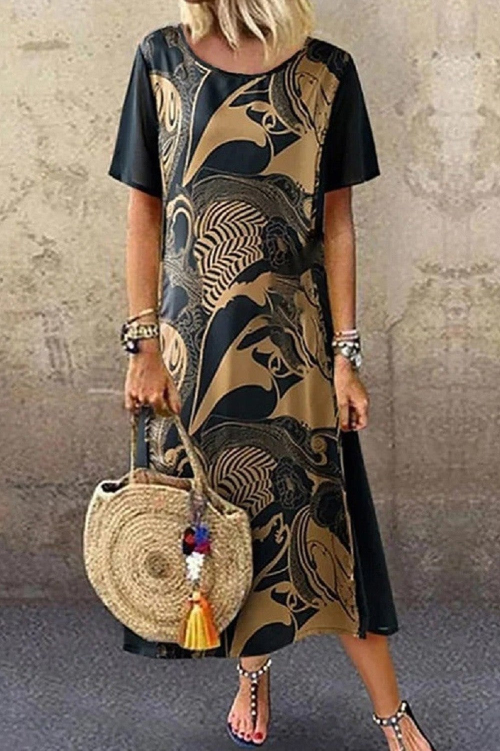 Dress women midi – relaxed fit – short sleeve – breathable fabric – tribal pattern
