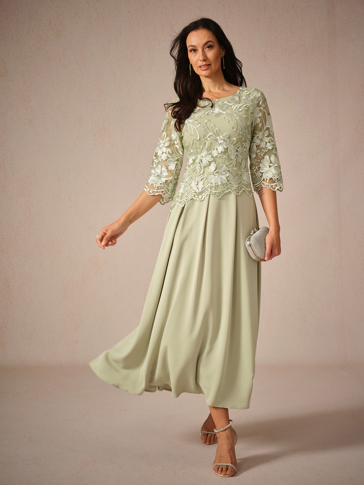 Dress for Women – Maxi Dress – Lace – Airy Fit – Three-Quarter Length Sleeves – Elegant