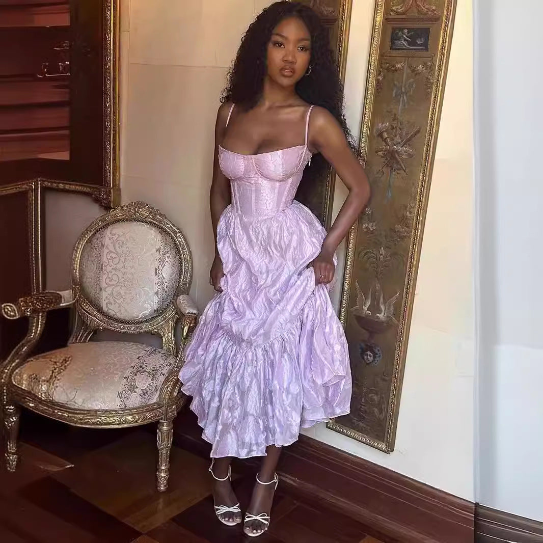 Dress for Women – Midi Length – Fitted Bodice – Sleeveless – Ruffle Skirt