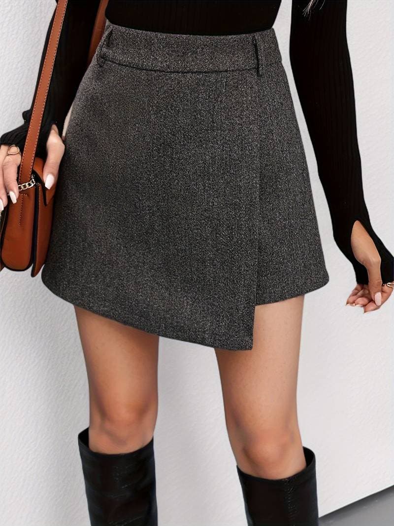 Women's Asymmetric Skirt – Wrap Design – High Waist – Elegant Textured Fabric
